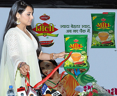 Rani Mukherjee had gala time at the Wagh Bakri Tea Lounge in Mumbai tonight, where the veteran actress was present to promote her forthcoming movie Aiyyaa and to launch new pack of Mili tea.