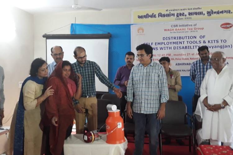 "PROMOTING VOCATIONAL SKILLS FOR DIFFERENTLY-ABLED INDIVIDUALS" Distributed 102 Self-employment kits to differently-abled individuals with the support of Ashirvad Viklang Trust, Sayla, Surendranagar.